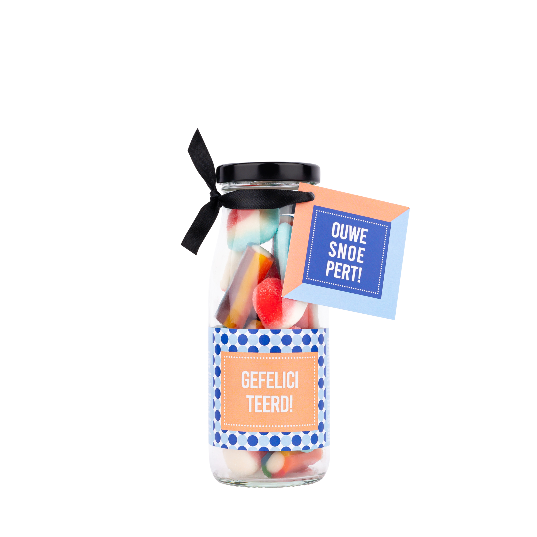 Snoepflesje 250 ml - Gefeliciteerd! Ouwe snoepert! - per 6